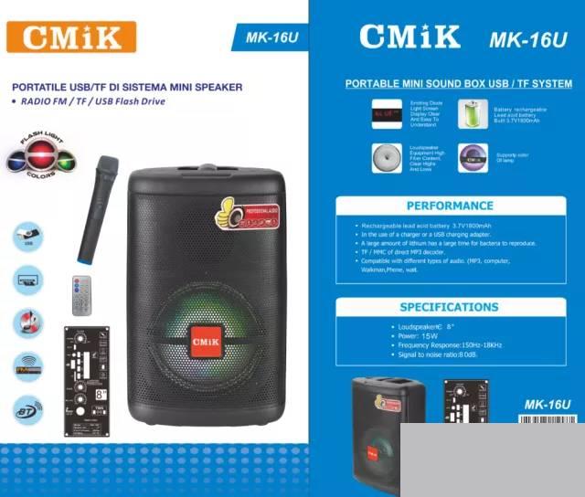 CMiK MK-16U 8″ Bluetooth karaoke bežični zvučnik poseduje FM, Bluetooth, USB, ulaz za TF karticu, AUX. Pruža vam odličan, veoma jasan i čist kvalitet zvuka.